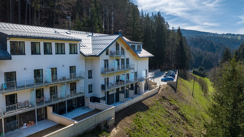 Původní hotel Jasmín z 80. let prošel kompletní rekonstrukcí na prosvětlené apartmány. Loftové a mezonetové jednotky nabízí kouzelné výhledy do krkonošských lesů a harmonický šum pstruhového potoka.